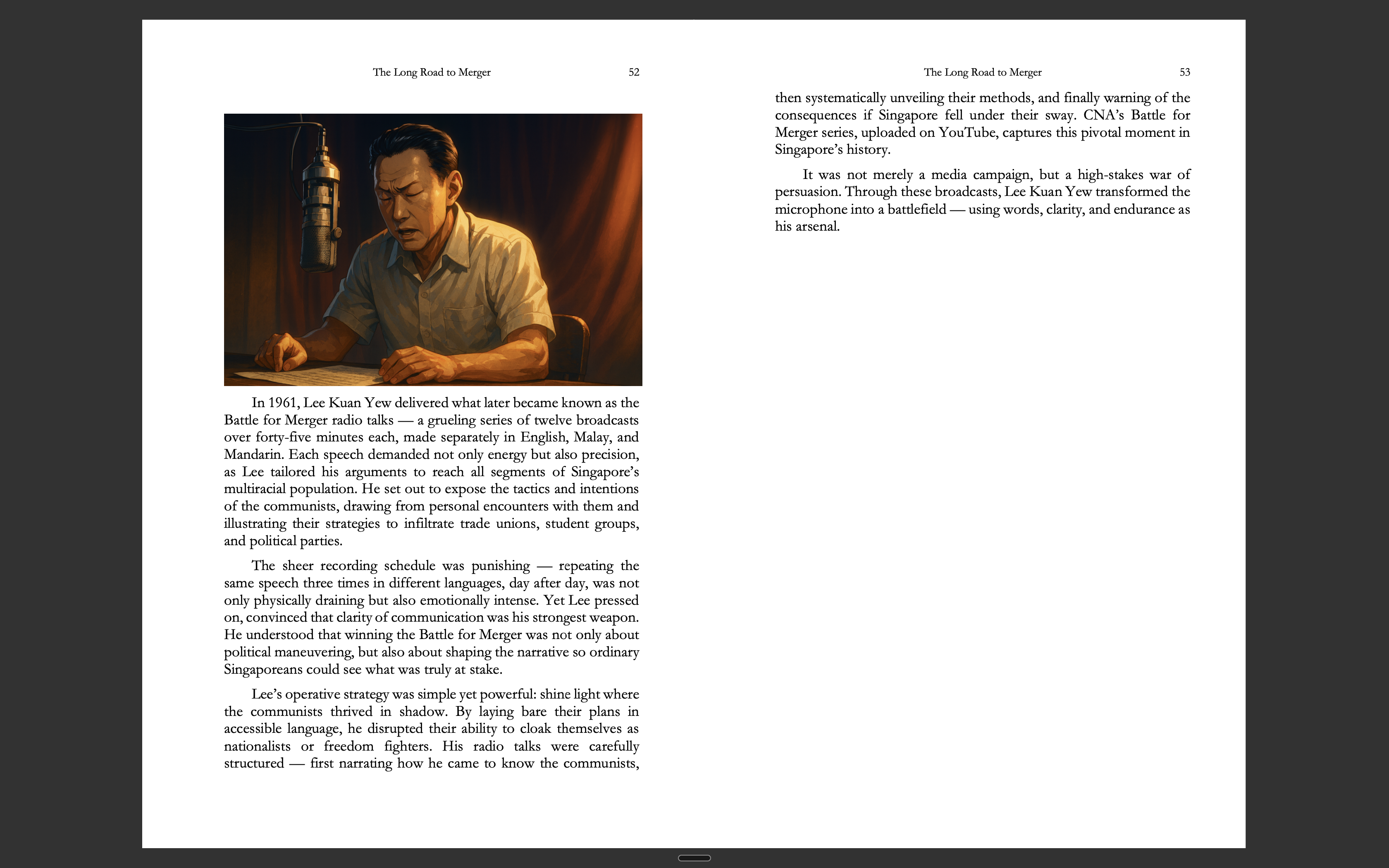 In this engaging biography about Lee Kuan Yew that draws together Mr Lee’s memoirs, including The Singapore Story and From Third World to First, as well as sources that range from the National Archives to Straits Times pieces as well as interviews and speeches of Mr. Lee as well as his contemporaries, you will experience the early days of Mr Lee Kuan Yew and the formation of Malaysia, and discover the travails and struggles leading up to the independence of both nations as well as Mr Lee’s legacy from childhood to his time in Malaysia leading up to his transition of power and eventually the conclusion of his story.