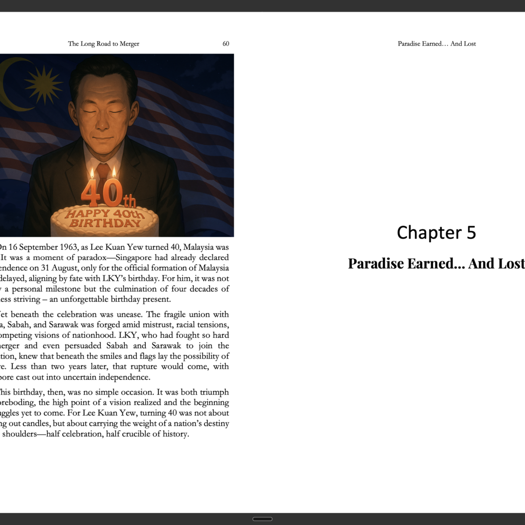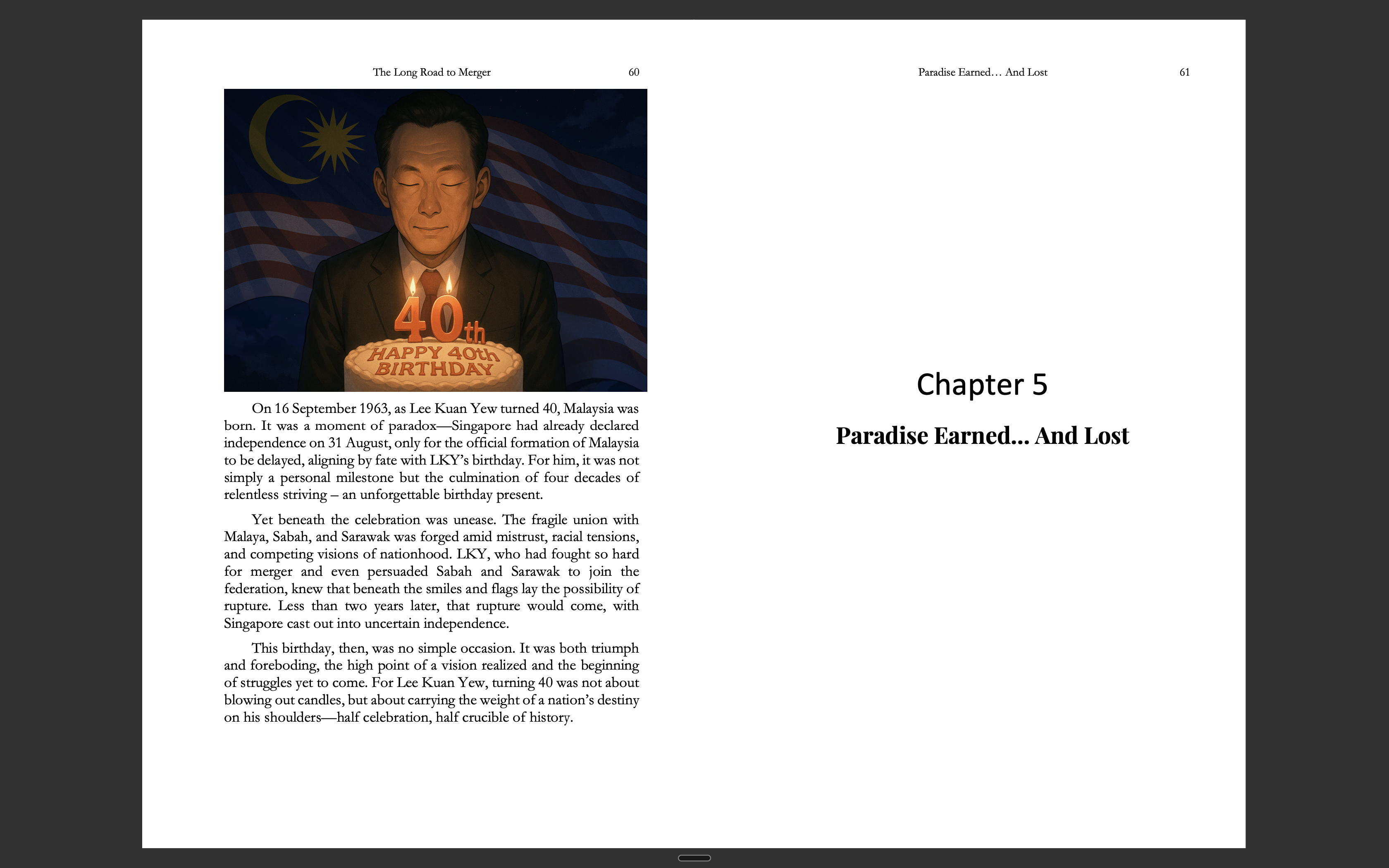 On September 16, two destinies were born, though they could not have been different from one another – these were the first Malaysia Day, referencing the day when Malaysia came into existence as a federation, and the 40th birthday of Mr Lee Kuan Yew, Singapore’s founding Prime Minister – hence the title of this book: One Date, Two Destinies.